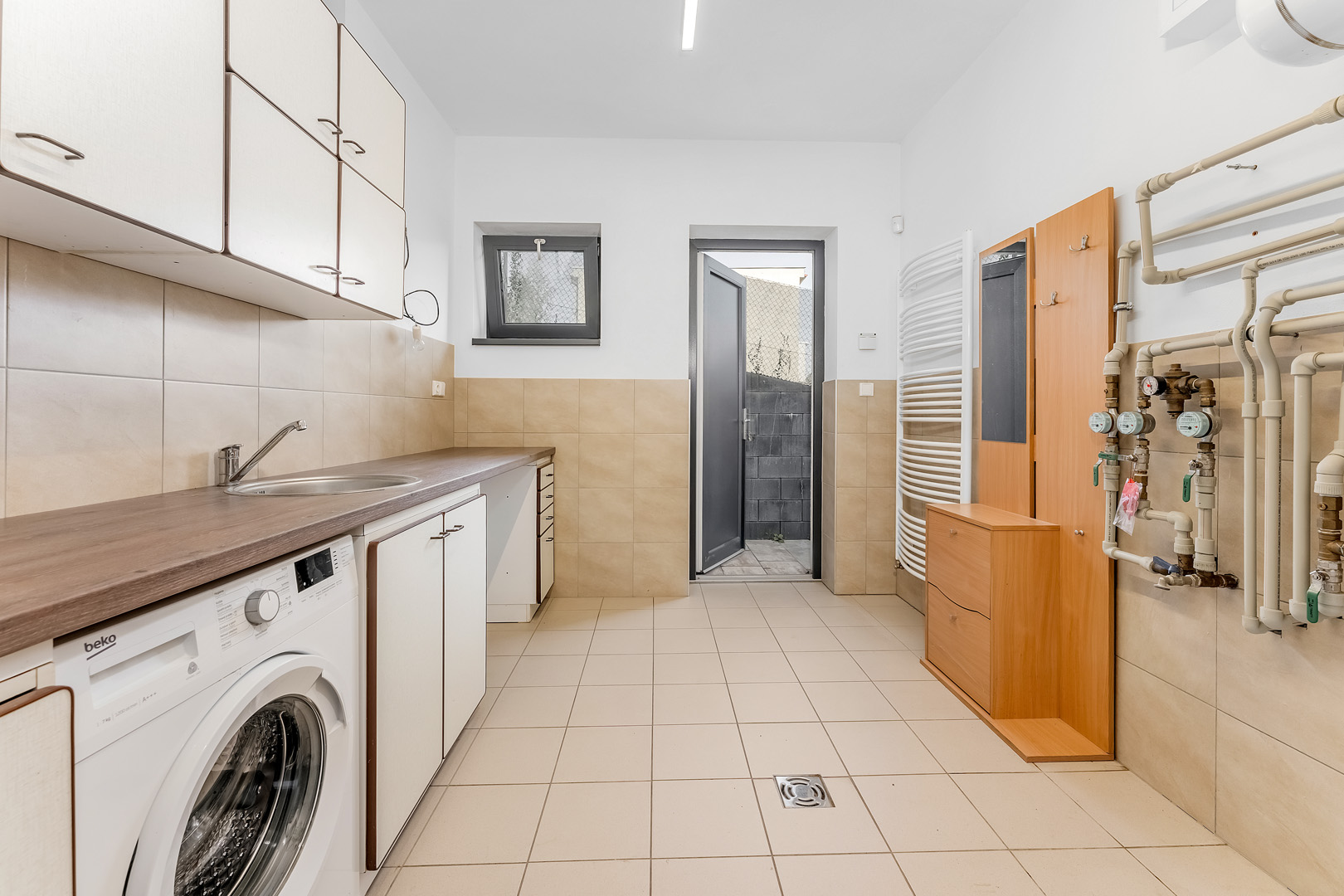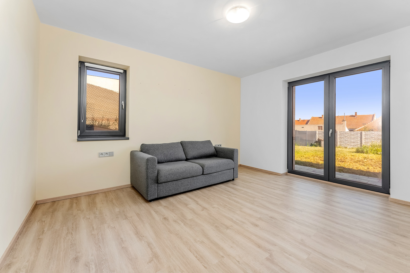 Novostavba o celkové užitné ploše 250 m² nabízí tři ložnice, pokoj pro hosty, jenž může být ideální dětskou hernou nebo pracovnou, a praktickou technickou místnost s kuchyńkou a s bočním přístupem do zahrady. Nechybí zde ani samostatná šatna a místnost připravená na budoucí privátní wellness. Všechny pokoje v 1. podzemním podlaží mají navíc přímý přístup do zahrady.